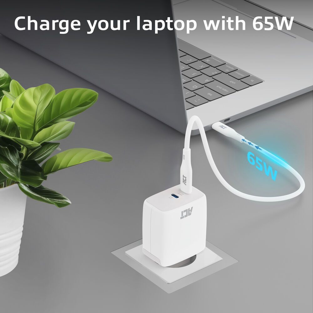Csatlakoztassa Android okostelefonját/tabletjét és a legújabb generációs iPhone/iPad készülékét az ACT 65W-os USB-C gyorstöltőhöz, hogy mindössze 30 perc alatt 70%-ra töltse fel készülékét.