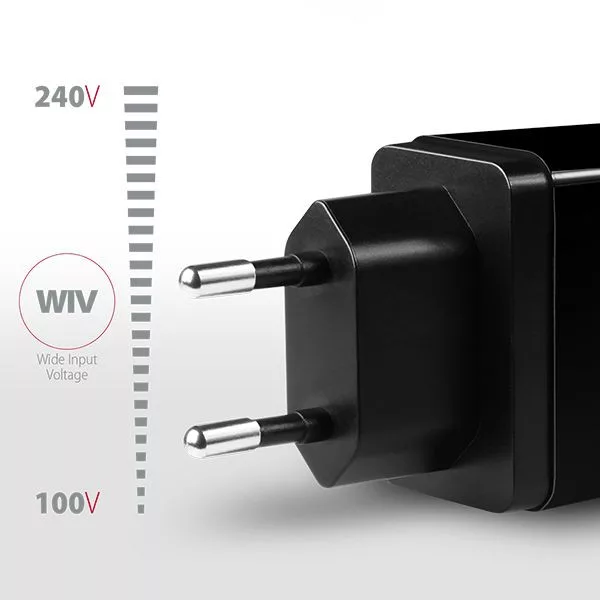 • Wide Input Voltage - széles bemeneti feszültség tartomány, megóvja az adaptert a bemeneti feszültséghiánnyal és túlfeszültséggel szemben, valamint lehetővé teszi több "nemzeti töltési standard" használatát.
