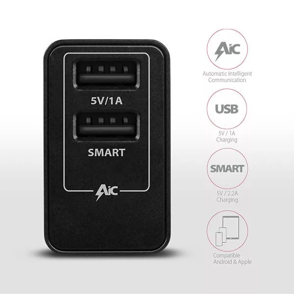 Az AIC funkció felismeri a csatlakoztatott készüléket, és automatikusan kiválasztja az optimális töltési sebességet, CV/CC - funkció biztosítja a töltés stabil lefolyását.
