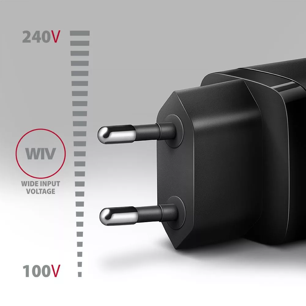 • az AC 100V-240V / 1A / 50-60 Hz (WIV funkció) bemeneti feszültség többféle nemzeti töltési standardot támogat