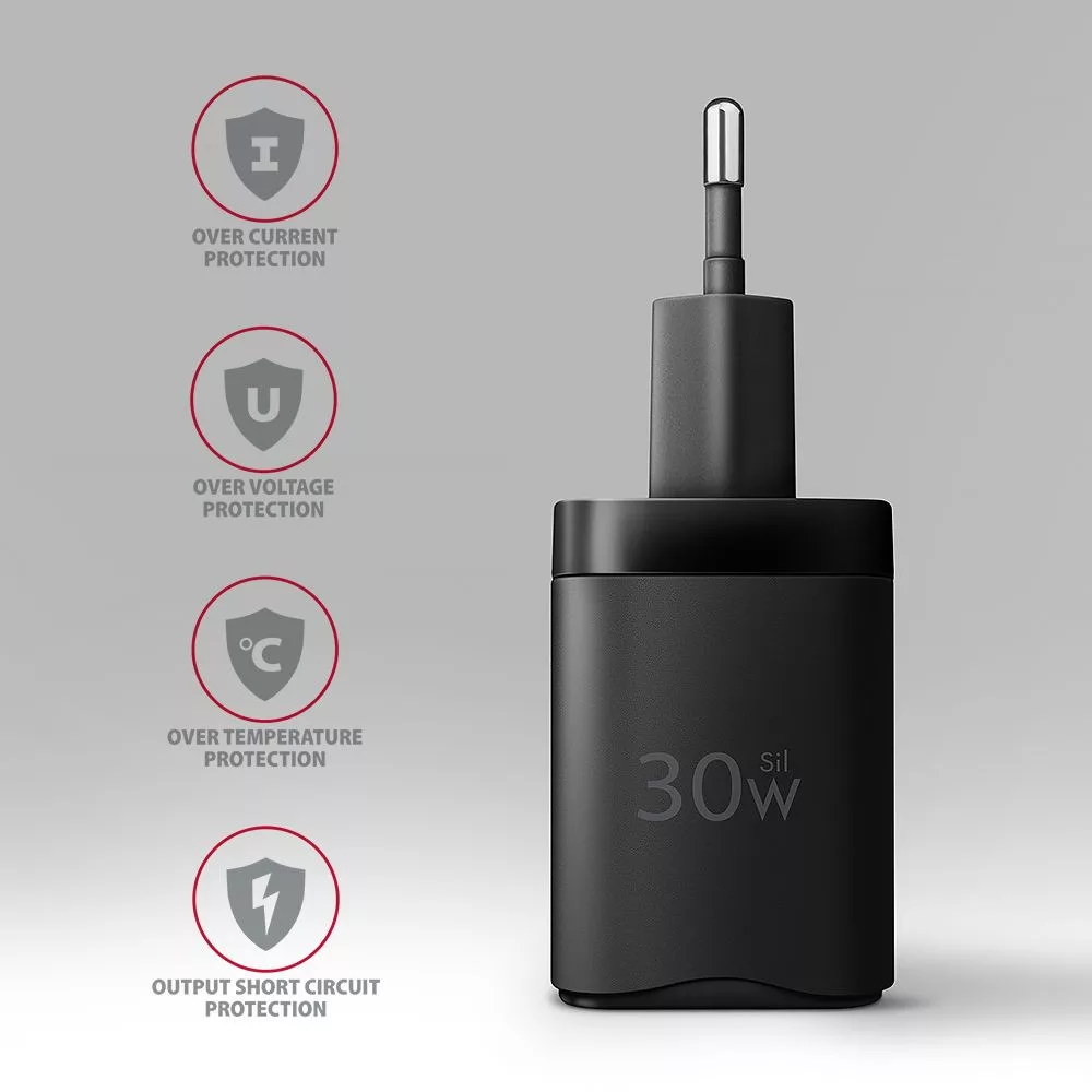 A kompakt méretet és a nagy teljesítményt az alkalmazott új Sil technológia adja. A Super Silicon fejlett szilícium alapú anyagokat használ. A töltő így kisebb méreteket és egyben biztonságos, stabil és gyors töltést tud elérni. A hatásfok tehát megegyezik a GaN technológiáéval, miközben kedvező árat tart. A töltő Power Delivery 3.0 / Quick Charge 4+ USB Type-C kimenettel eamelyek lehetővé teszik az okostelefonok és táblagépek gyors töltését akár 30W-os teljesítménnyel.