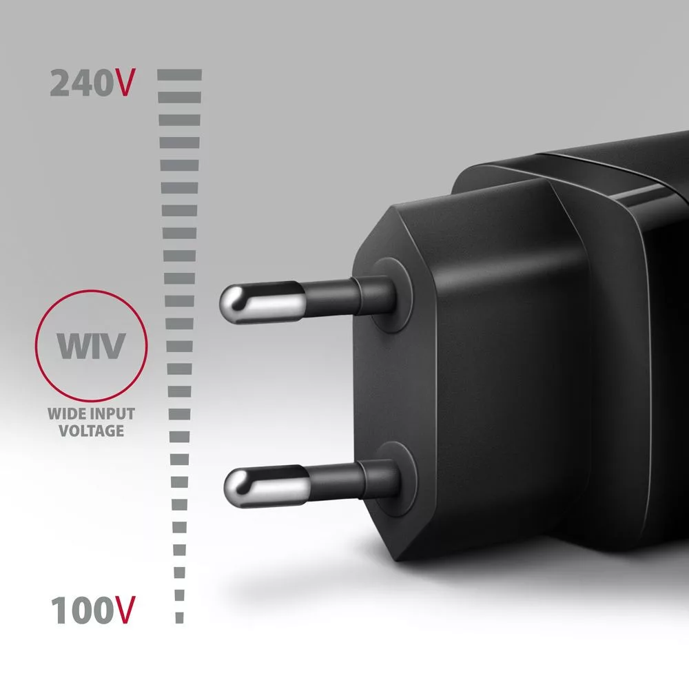 Az AIC funkció felismeri a csatlakoztatott készüléket, és automatikusan kiválasztja az optimális töltési sebességet, a CC funkció stabil töltést biztosít. A WIV funkció a bemeneti feszültségek széles skálájával működik, védi az adaptert a túl alacsony feszültség és a bemeneti túlfeszültség ellen, és lehetővé teszi több "nemzeti tápegység szabvány" használatát. A töltő adapter kimenetének haladó szintű biztonsági rendszere óvja a töltött készüléket a sérülésekkel szemben.