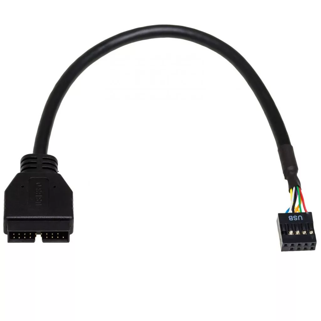 USB kábel, 9-pin, 20-pin, Male/Female, 0,2m, Black, Adatkábel