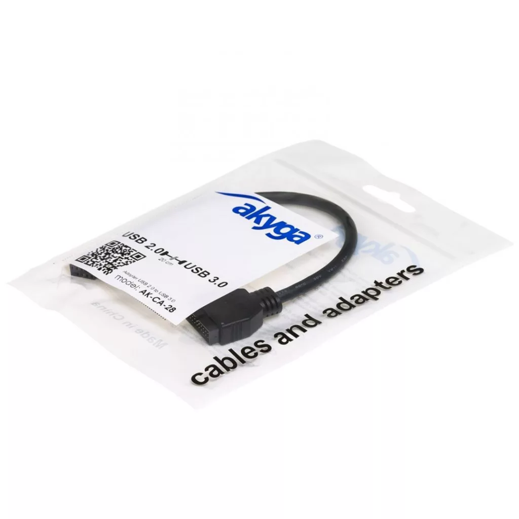 Az Akyga® AK-CA-28 USB adapter lehetővé teszi, hogy olyan alaplaphoz csatlakoztasson elülső USB 3.0 portot, amely nem rendelkezik 20-tűs csatlakozóval. Csatlakoztatott USB portként viselkedik, mint egy hagyományos USB 2.0 port.
