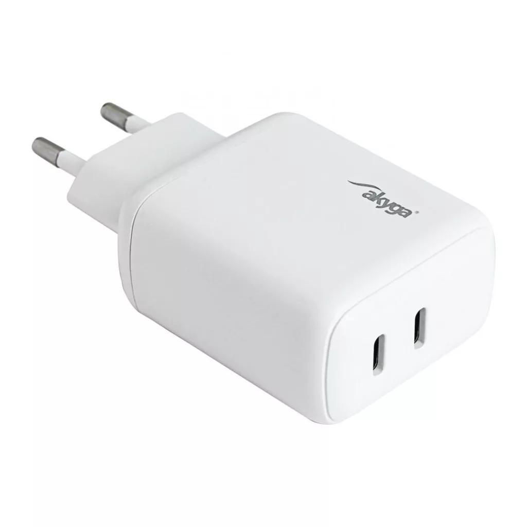 Adapter, 2xUSB-C, 5V/9V/12V, 3A, 40W, QC, PD, White