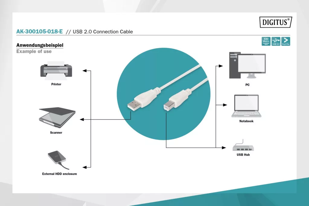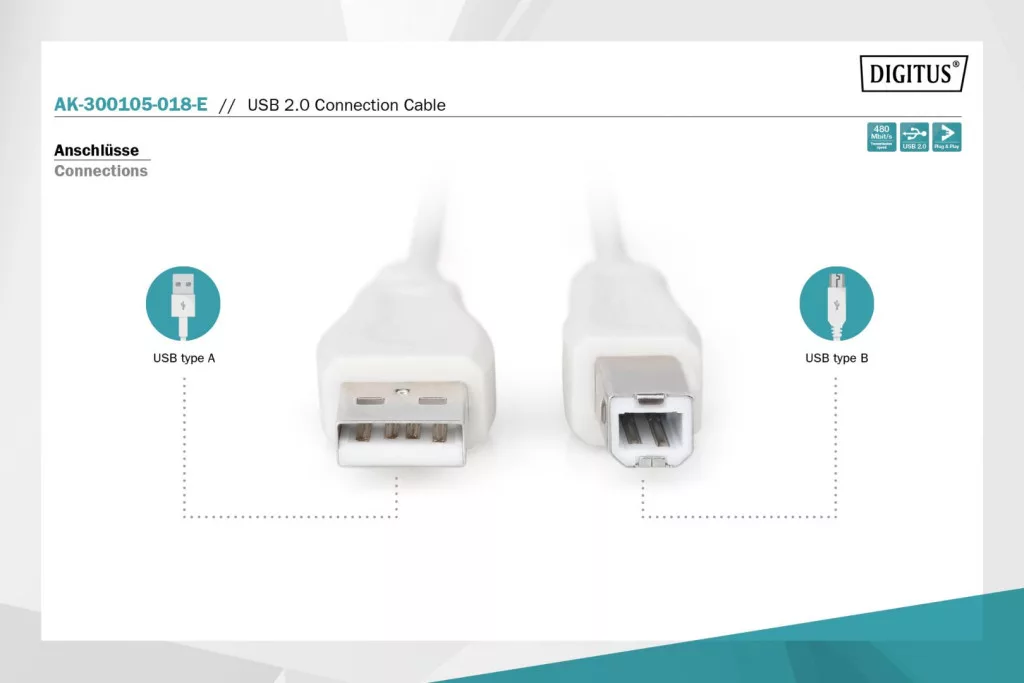 Assmann USB 2.0 connection cable, type A - B 1,8m Beige