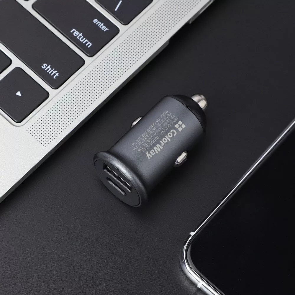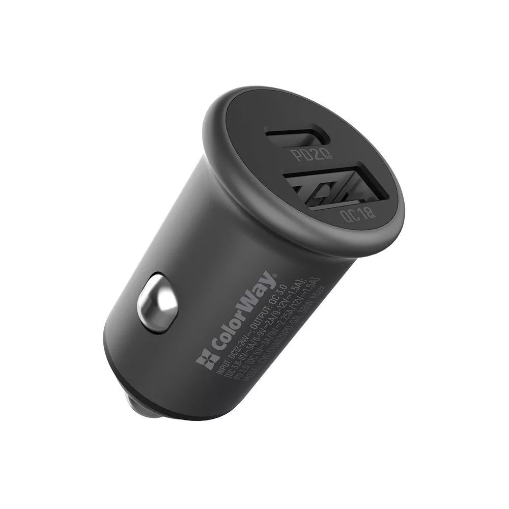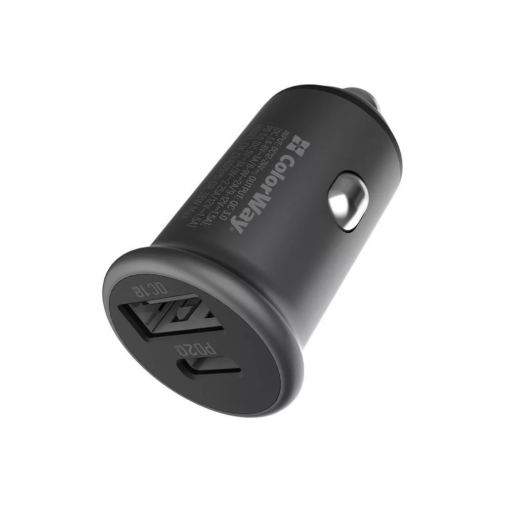 Autótöltő Colorway 2USB (Type-C PD20W + USB QC3.0) (38W) Szürke egy nagy teljesítményű adapter, amely ideális az Apple iPhone 12 Pro / 12 Pro Max / 12 mini / 12/11 Pro / 11 Pro Max / 11 / SE / XS / XS Max / XR / X / 8/8 Plus, Apple iPad Pro 12.9 / iPad Pro 11 "/ iPad Pro 11" töltéséhez.