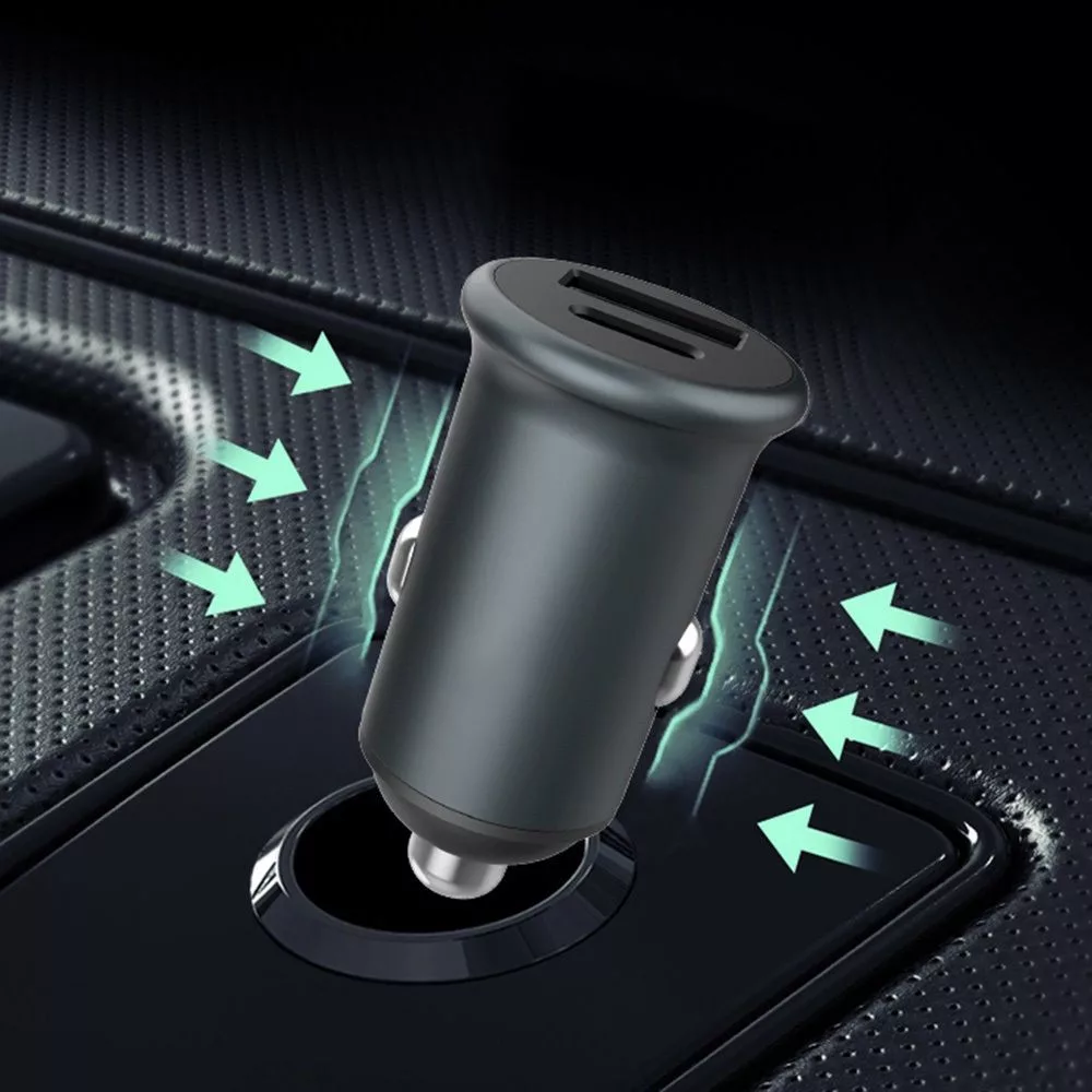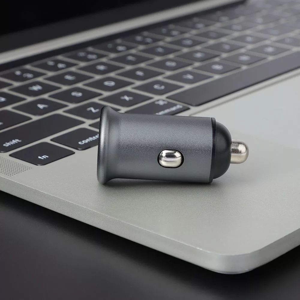Autós töltő, 1xUSB-A, 1xUSB-C, 38W, QC, PD, Grey