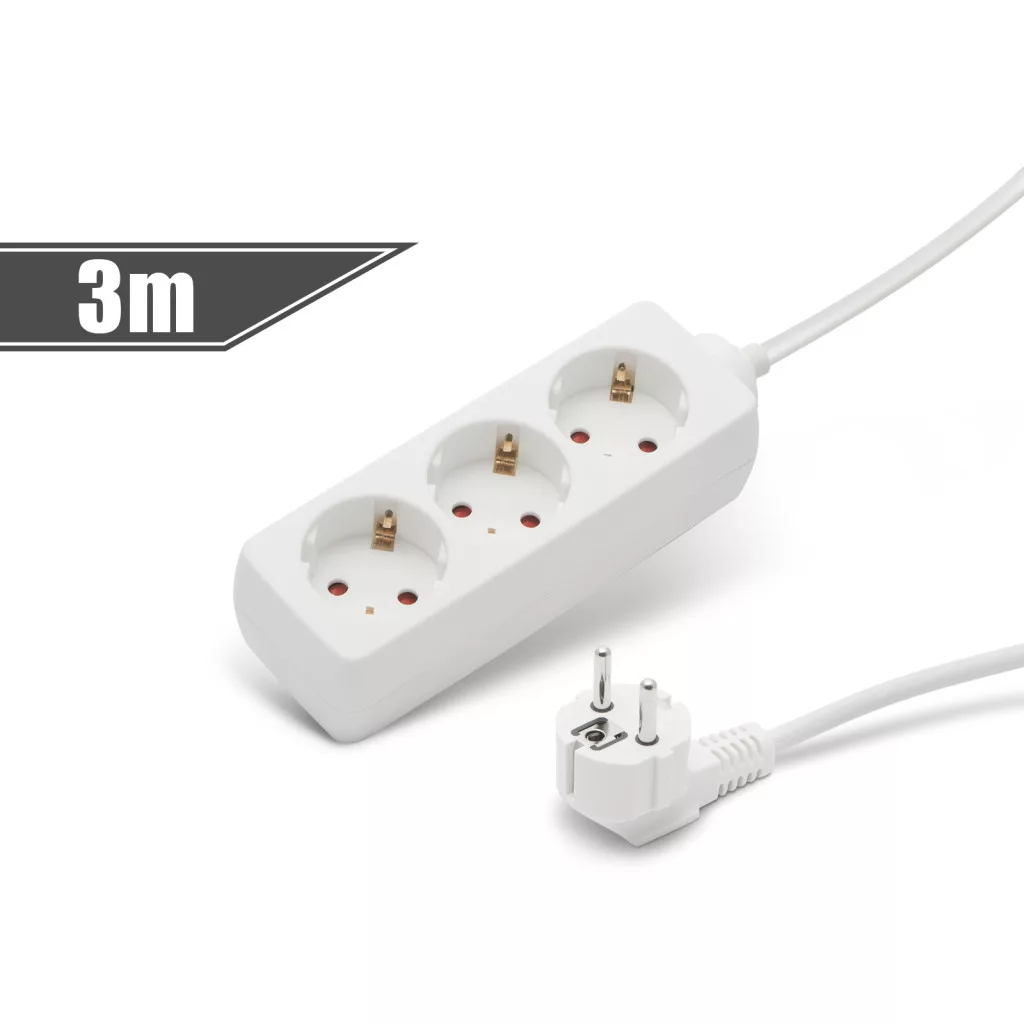Általános, fehér elosztó, amely használata javasolt háztartásban, irodákban. Jó minőségű, vastag szigetelése megvédi a kábelt a sérülésektől, a kábel esetleges megtörésétől.