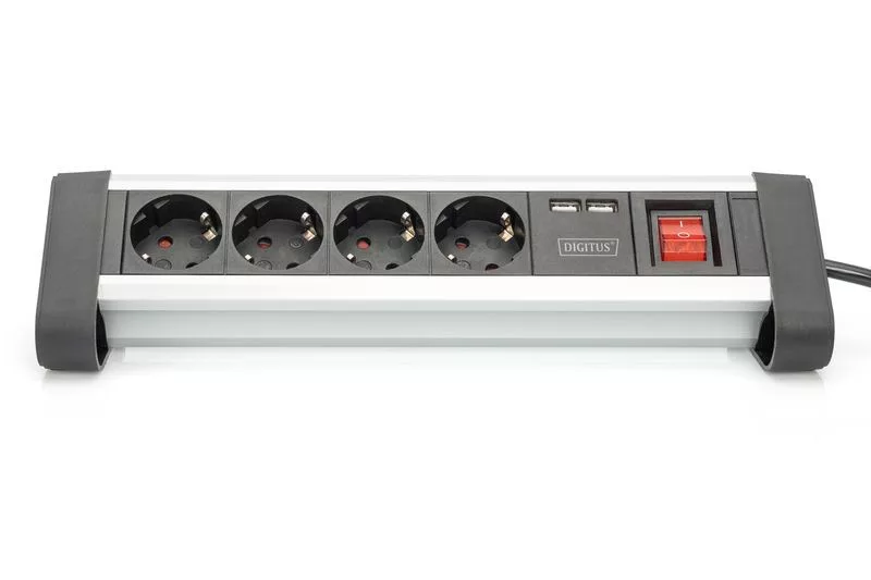 Elosztó, 4xDIN, 1,5m, Kapcsoló, USB, Silver/Black