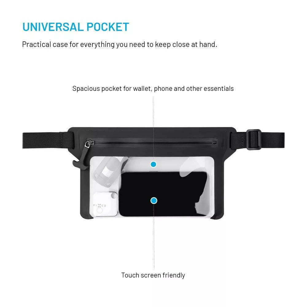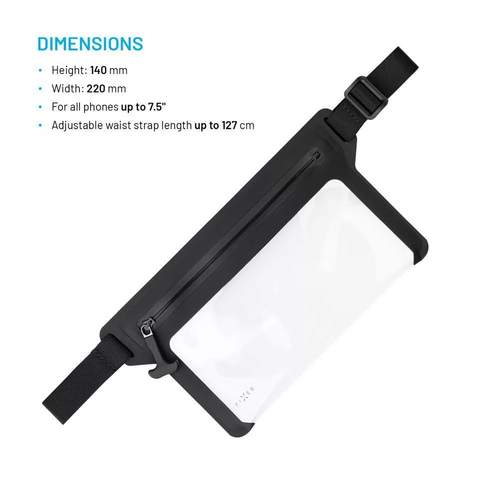A vízálló, derékra rögzíthető FIXED Dry Belt táska nagyszerű választás a szabadtéri sportolók, a természet szerelmesei, valamint a fesztivál- és koncertlátogatók számára, akiknek a tartalom gyors ellenőrzéséhez átlátszó táskára van szükségük. A tágas belső zsebben minden lényeges dolog elfér, beleértve a 7,5" méretű telefonokat is, így mindig kéznél lesz minden fontos dolog. Az átlátszó oldalak lehetővé teszik a telefon érintéses vezérlését közvetlenül a tokban, beleértve a Face ID-t is. A tok rendkívül tartós Hypalon hálós 420D anyagból készült, amely maximális védelmet nyújt a vízzel, kopással vagy szakadással szemben, így a tok élettartama még erős használat mellett is meghosszabbodik. A biztonságos zárást vízálló cipzár biztosítja, amelyet csak szorosan meg kell húzni, és a tok azonnal lezárul. Az IPX8 minősítésnek köszönhetően még akkor is megvédi a tartalmát, ha akár 5 méteres mélységig, egy órán keresztül merül el. A kényelmes viselet érdekében a táska egy állítható, legfeljebb 127 cm hosszúságú pánttal van ellátva, amelyet könnyedén az Ön igényeihez igazíthat.