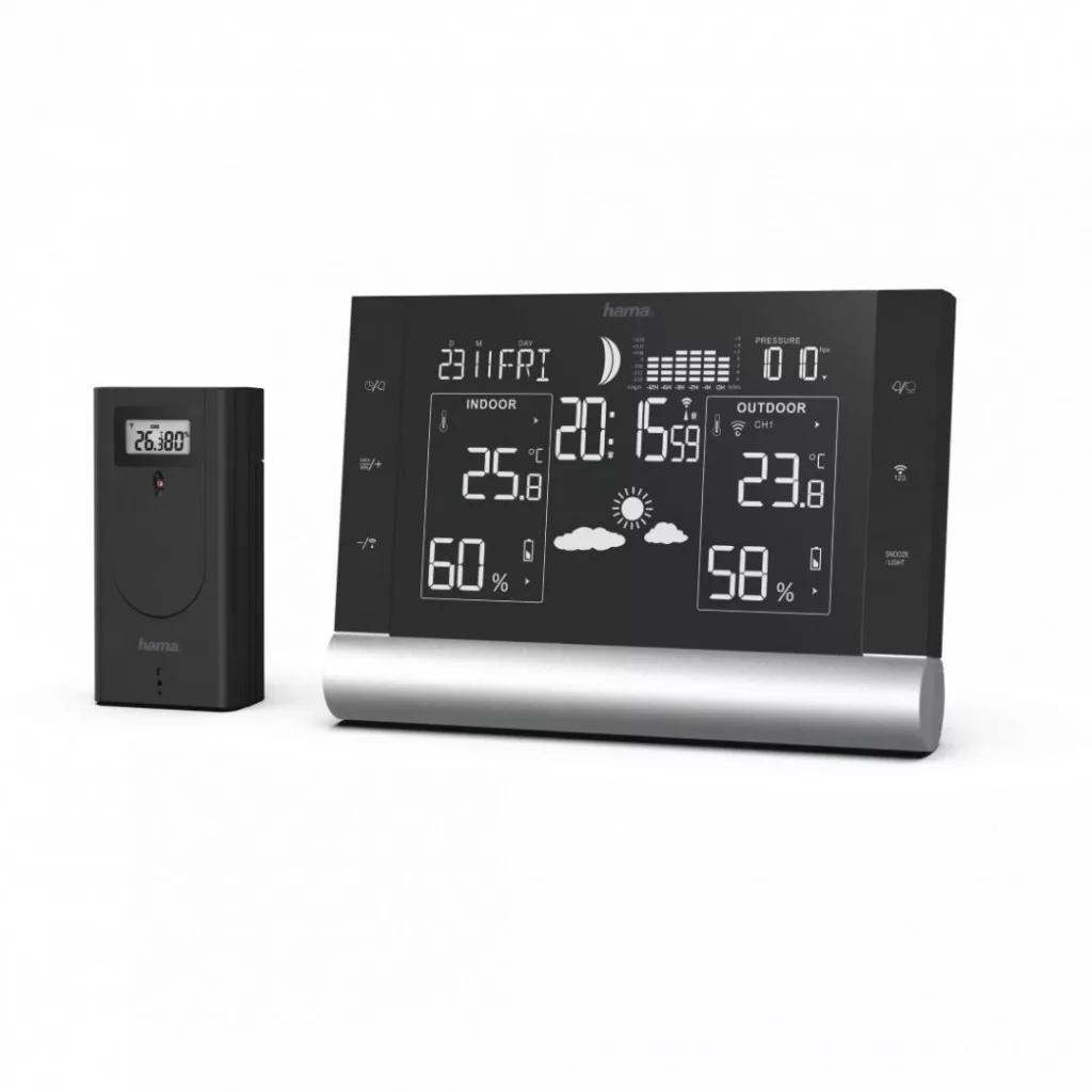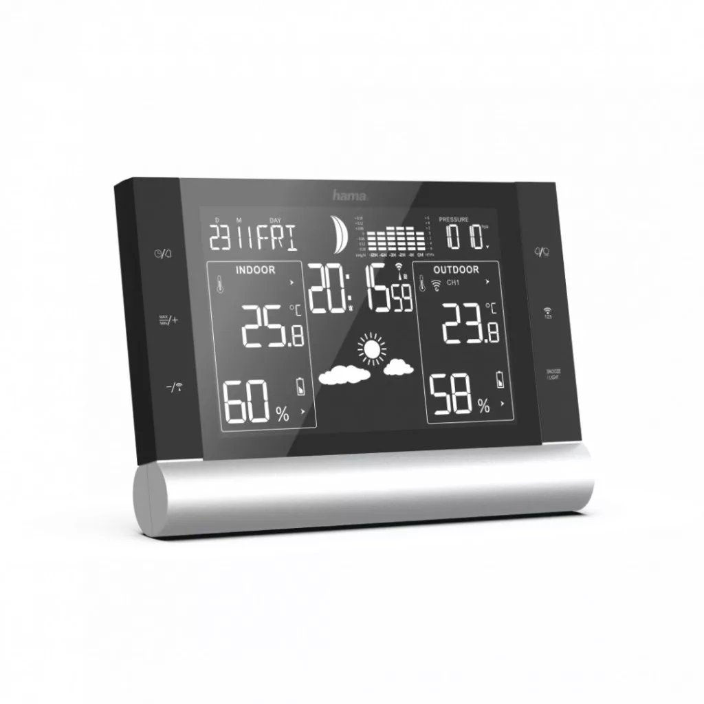 Extra nagy méretű kijelzővel rendelkező érintőszenzoros, háttérvilágításos ébreszőórás időjárás állomás hő és páratartalom mérővel, kültéri szenzorral