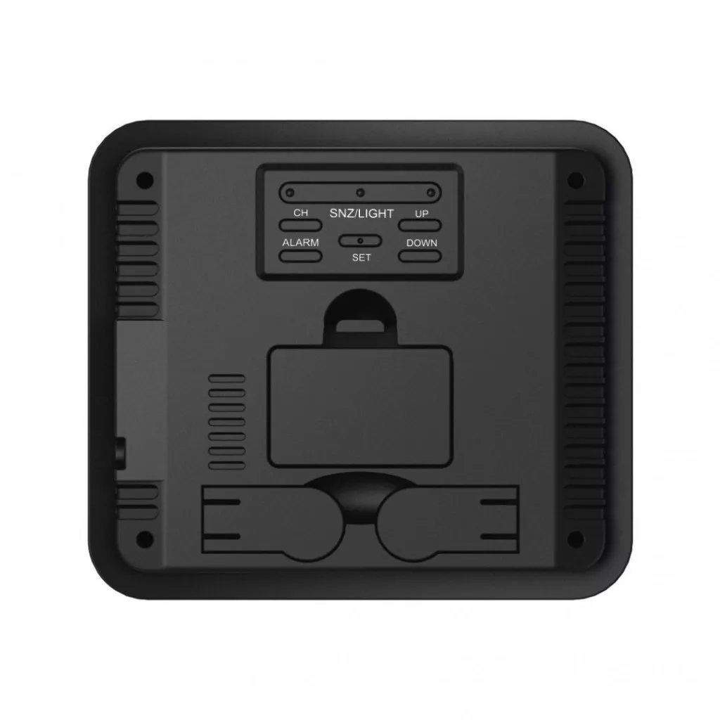 •Négyrészes készlet, amely bázisállomást és három rádiós kültéri érzékelőt tartalmaz az idő, a hét napja, a dátum, a hőmérséklet és a környezeti páratartalom kijelzésére
