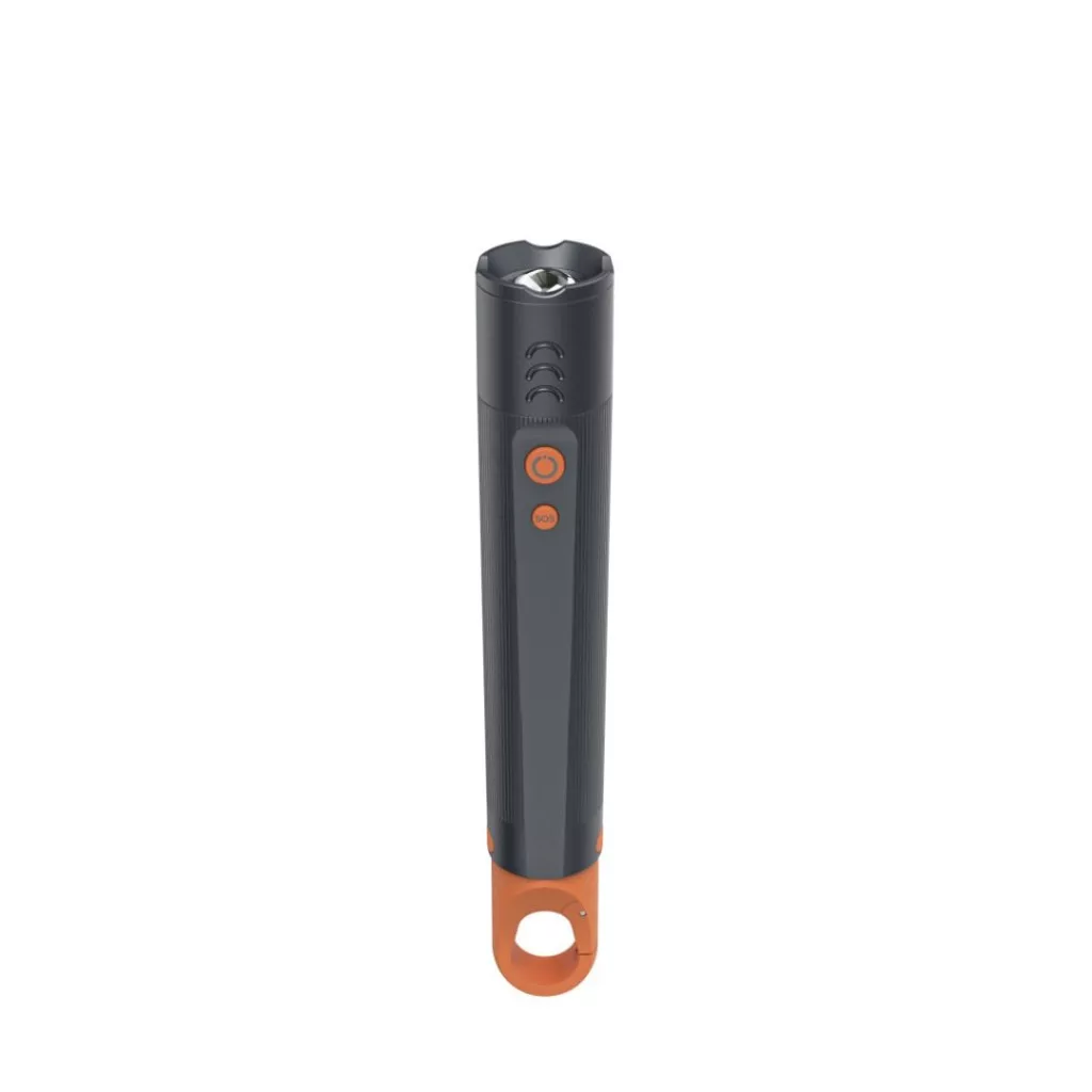 • A kültéri zseblámpa bordázott markolata biztos és csúszásmentes fogást biztosít, a zoom funkció pedig a bordázottságnak köszönhetően könnyen beállítható