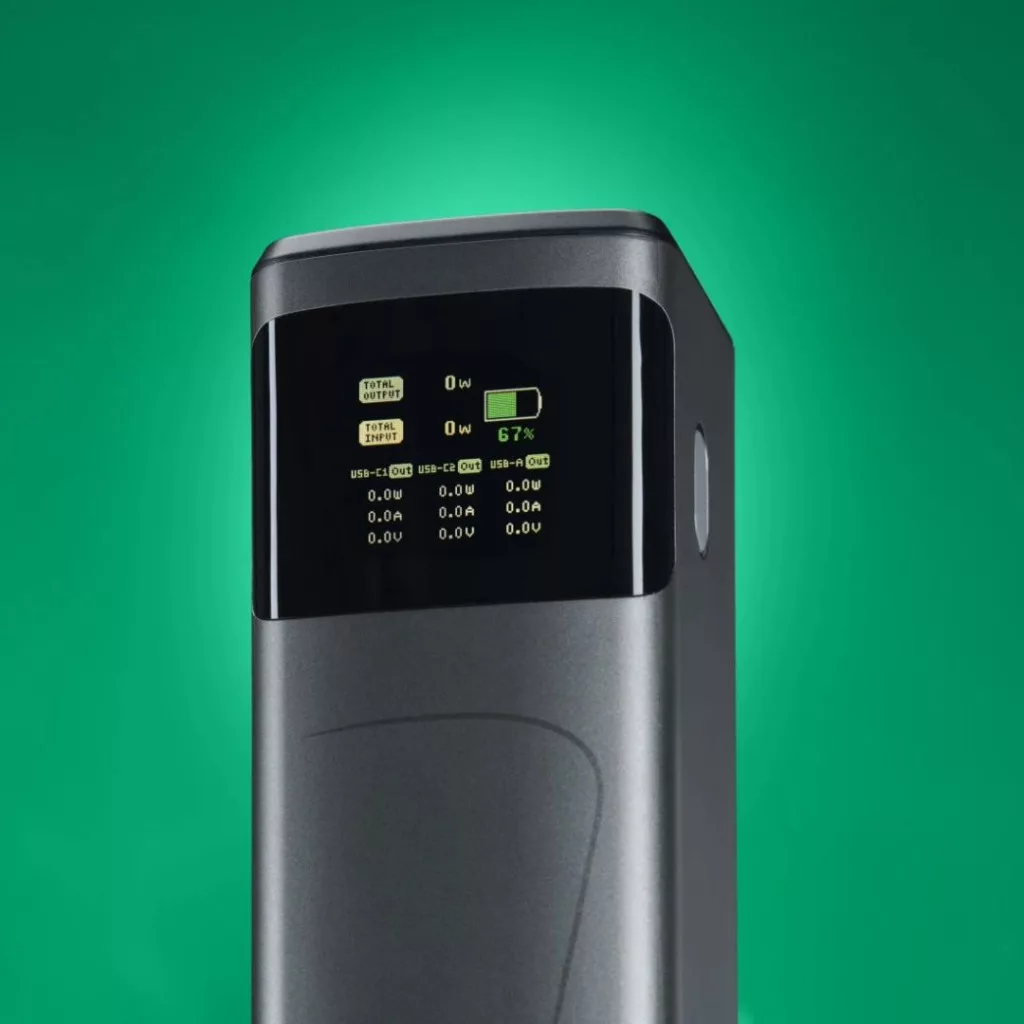 Ezzel a kiegészítő akkumulátorral nem találgatni kell, hanem a kijelzőn keresztül pontosan megtudhatja, mennyi energia fogy és mennyi van még hátra. A százalékos érték megmutatja, hogy mennyi akkumulátorkapacitás maradt magában a tápegységben. A kijelzőn látható az egyes töltőaljzatok kimeneti teljesítménye és a teljes teljesítmény wattban. Ez lehetővé teszi, hogy pontosan megtervezze az eszközök töltését útközben, és minden egyes eszközét elegendő energiával lássa el. Mi több: a "High Power" töltés közben egyszerre töltheti a készülékeit.