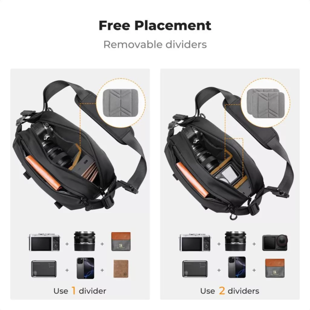 【Dupla cipzáras lopásgátló kialakítás】A kettős cipzáras záródású, egymásba csíptethető húzógyűrűkkel rendelkezik, amelyek elrettentik a lopástól, és biztosítják, hogy felszerelése biztonságban maradjon utazás vagy zsúfolt helyen történő fotózás közben.