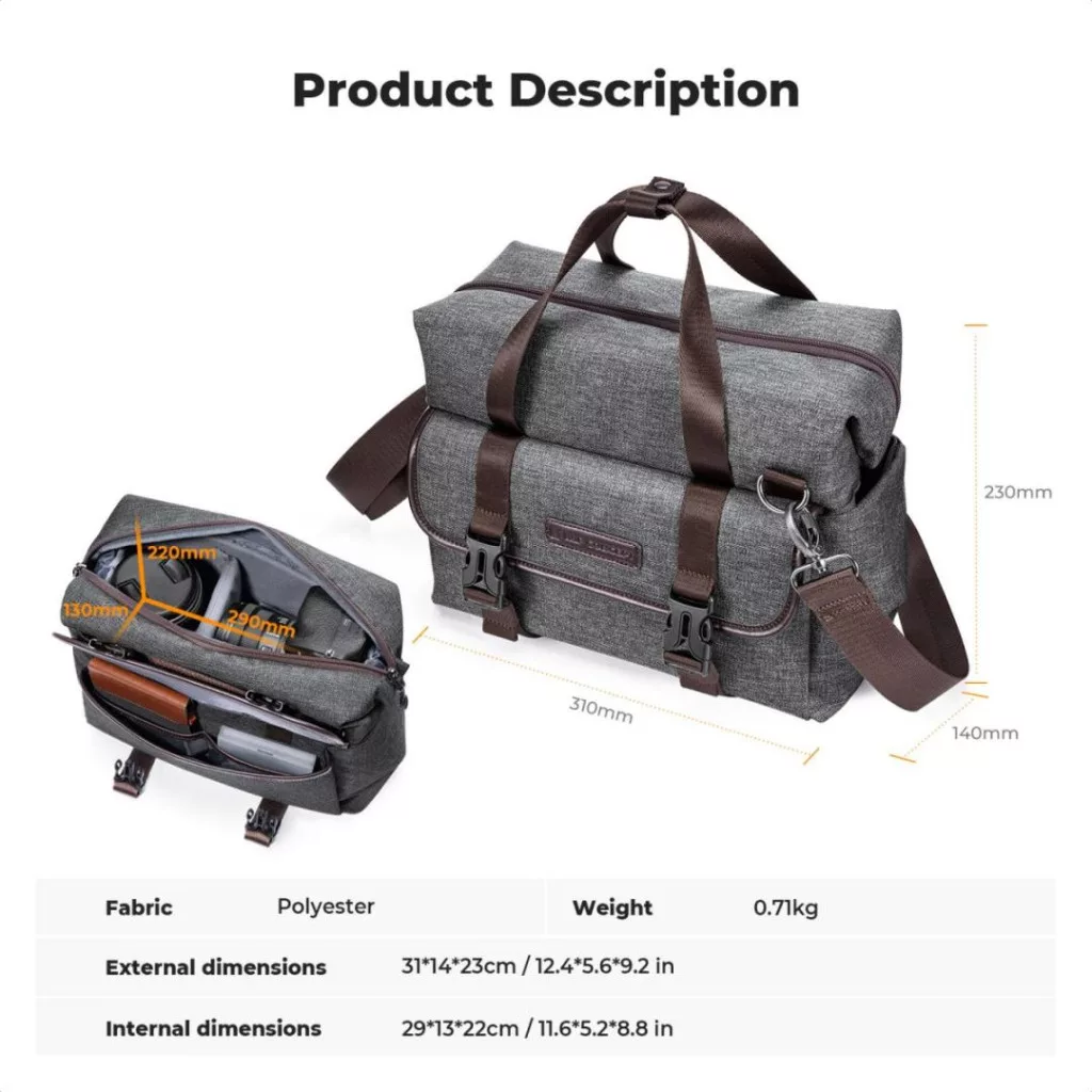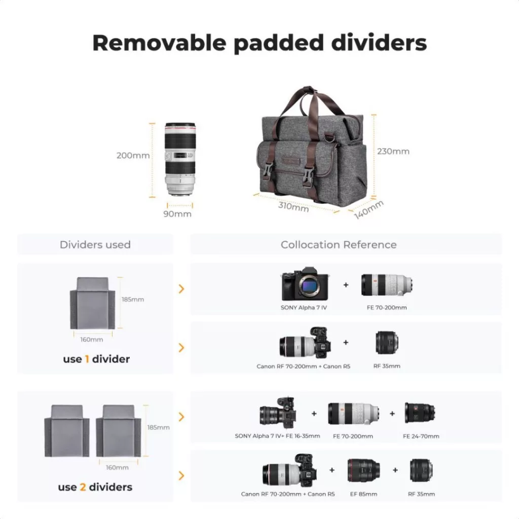 【 Méretek】Külső méret: 12,2 * 5,1 * 9,06 hüvelyk; Belső méret: 11 * 4,9 * 7,87 hüvelyk. A fényképezőgép heveder táska fő rekesze 1 DSLR/SLR/Mirrorless, 1-2 csere objektív és egyéb fényképészeti kiegészítők számára.
