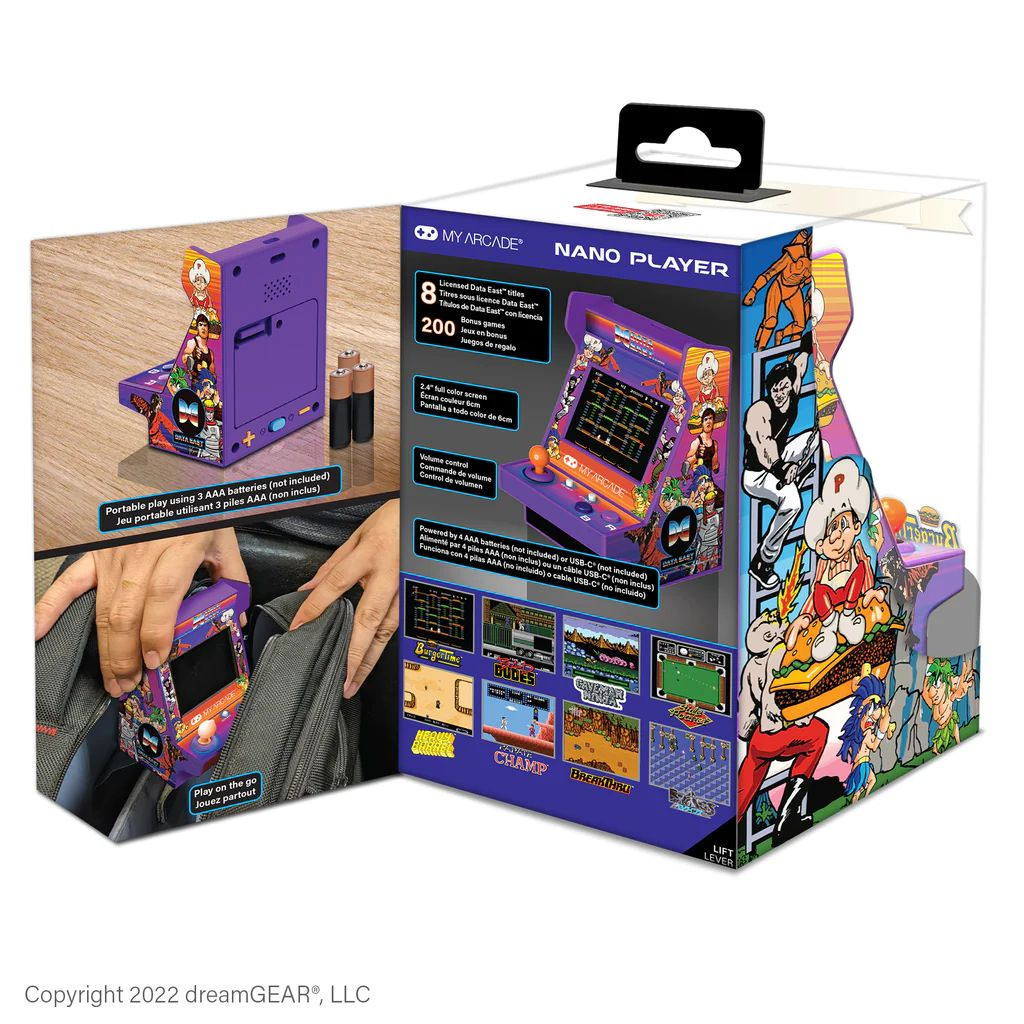 A gyűjthető Pico Player tele van emlékezetes Data East™ játékokkal. A MY ARCADE® összeállt a legendás játékfejlesztővel, a Data East-tel, hogy elhozza kedvenc Data East klasszikusait. Attól kezdve, hogy a BurgerTime™-ben csak egy borsszóróval van felfegyverkezve, vagy elég rossz haver ahhoz, hogy megmentse az elnököt a Bad Dudes™-ben, ez a Pico Player visszavezeti abba az időbe, amikor csak egy negyed kellett.