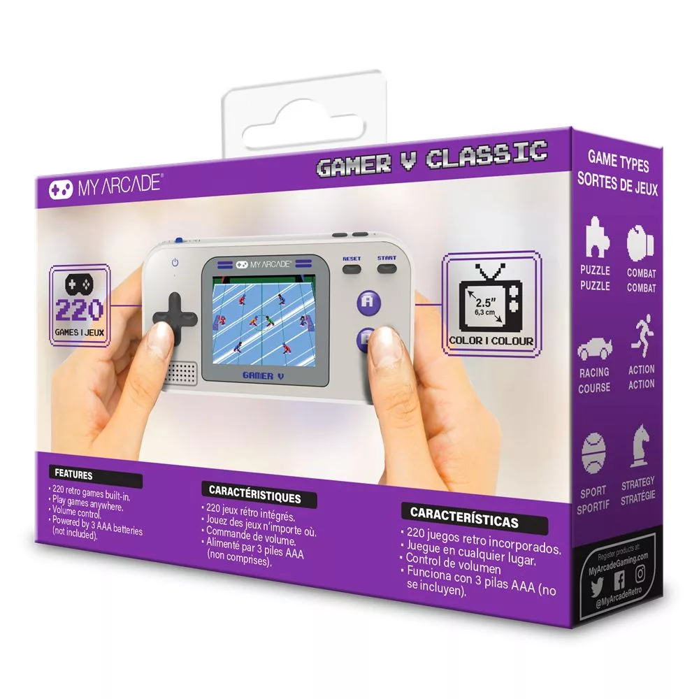 Szárnyalj az égbolton, fejts ki rejtvényeket, golfozzon vagy teniszezzen, és még sok más. A Gamer V 220 szórakoztató és könnyen játszható videojátékkal van feltöltve! Egyszerűen kapcsolja be a rendszert, és kezdjen el játszani bárhol, bármikor! A játékrendszer tökéletes otthon, az autóban, vagy szinte bárhol, ahol csak el tudod képzelni! Könnyen elfér a zsebében, pénztárcájában, táskájában vagy hátizsákjában! A Gamer V Classic segítségével játékai mindig kéznél lesznek!