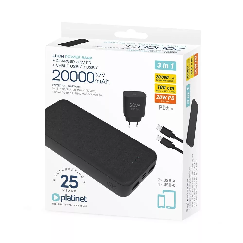 Kapacitás: 20 000 mAh / 3,7 V
