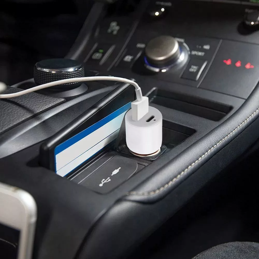 Autós töltő, 1xUSB-A, 1xUSB-C, 5V/9V/12V, 3A, 20W, PD, White