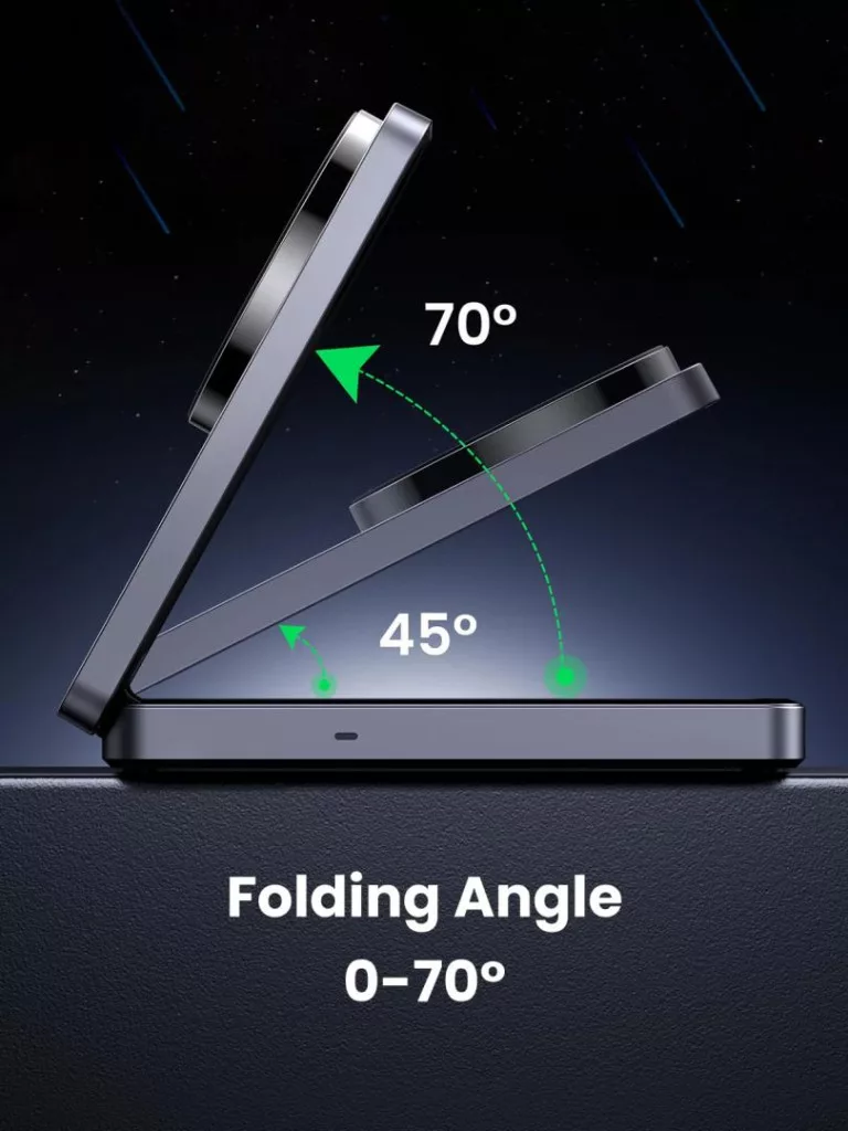 Kompakt és hordozható kialakítás: iPhone 16 méretére csukható, ideális utazáshoz. Állítható magasság és szög bármilyen helyzetben, 40%-kal kisebb versenytársainál.