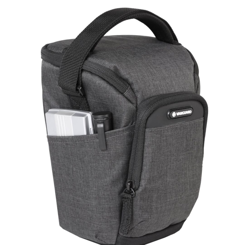 Ez a válltáska egy elülső zsebbel és két oldalsó zsebbel rendelkezik, amelyekbe további felszerelések, például dokumentumok vagy objektívfedél is elférnek. A fedél belsejében két rugalmas zseb található további kiegészítők, például tartalék SD-kártyák tárolására.