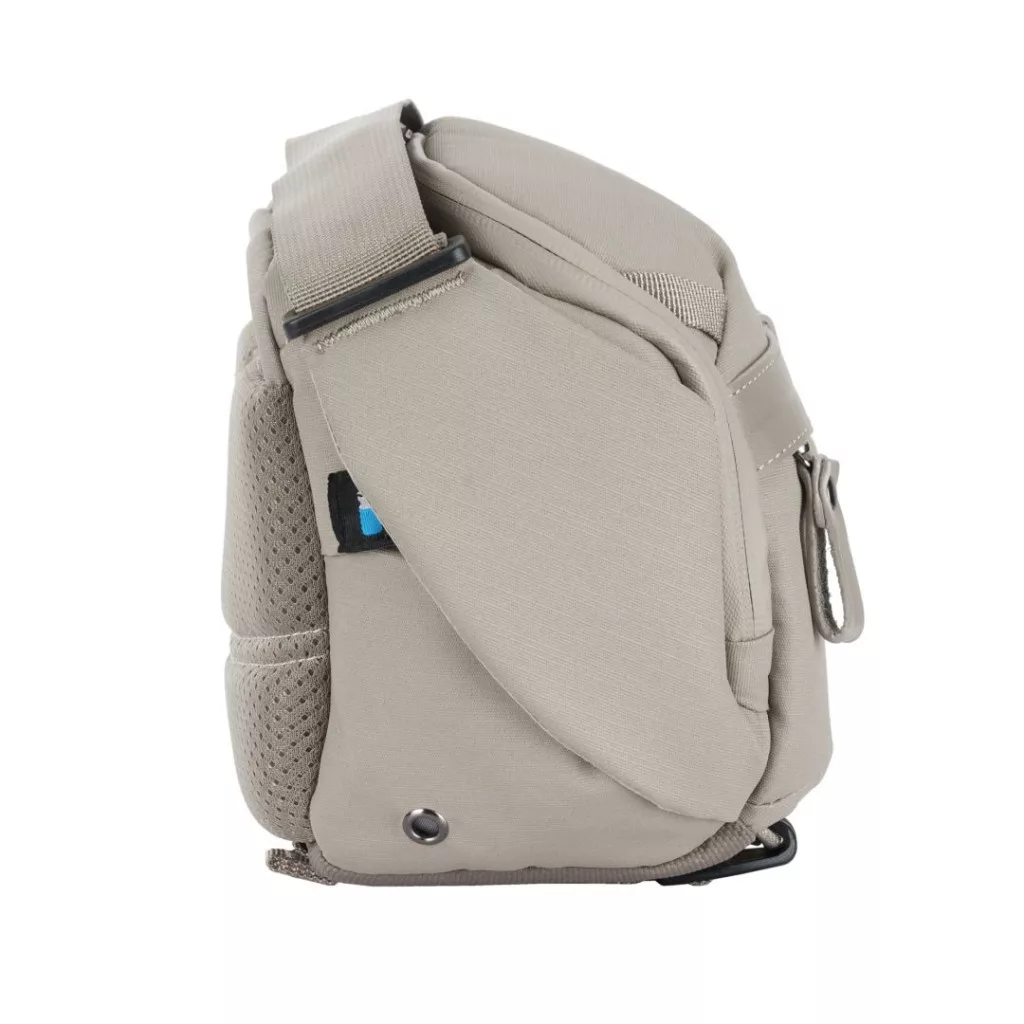 Ez a hasznossági csomaggal ellátott válltáska több tárolózsebet is tartalmaz. A bal oldalon (ahogy a táska Ön felé néz) egy vizespalack zseb van elrejtve. Ezenkívül a felső patent belső oldalán található zárt zsebek tökéletesek SD-kártyák és kiegészítők számára, míg a felső patent külső oldalán és a válltáska elején található zárt zsebek egyéb tárgyak számára használhatók. Van egy rejtett intelligens nyomkövető zseb is, így könnyen megtalálhatja a táskát, ha elkeveredik.