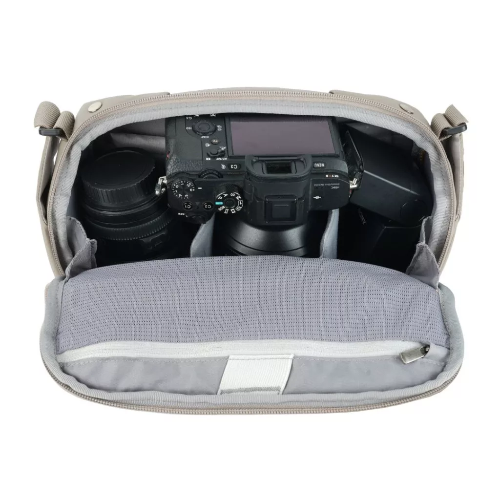 A VEO Metro S4L egy könnyű, 4 literes fényképezőgép-válltáska, amely fényképezőgéprekeszt és tablethüvelyt is kínál.