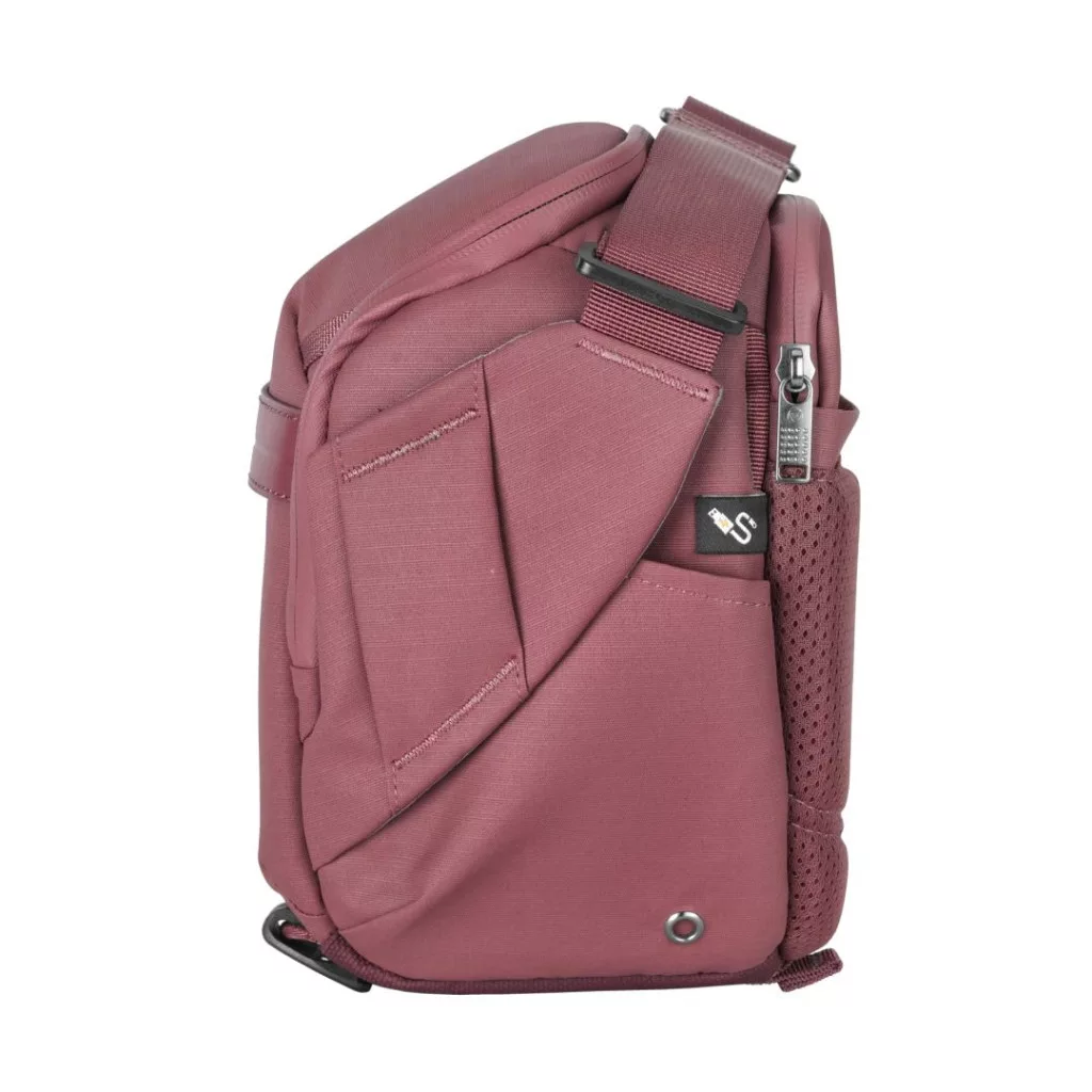 Ez a praktikusan felszerelt válltáska több tárolózsebet is tartalmaz. A bal oldalon (ahogy a táska feléd néz) egy vizespalack zseb van elrejtve. Ezenkívül a felső patent belső oldalán található zárt zsebek tökéletesek SD-kártyák és kiegészítők számára, míg a felső patent külső oldalán és a válltáska elején található zárt zsebek egyéb tárgyak számára használhatók. Van egy rejtett intelligens nyomkövető zseb is, így könnyen megtalálhatja táskáját, ha elkeveredne.