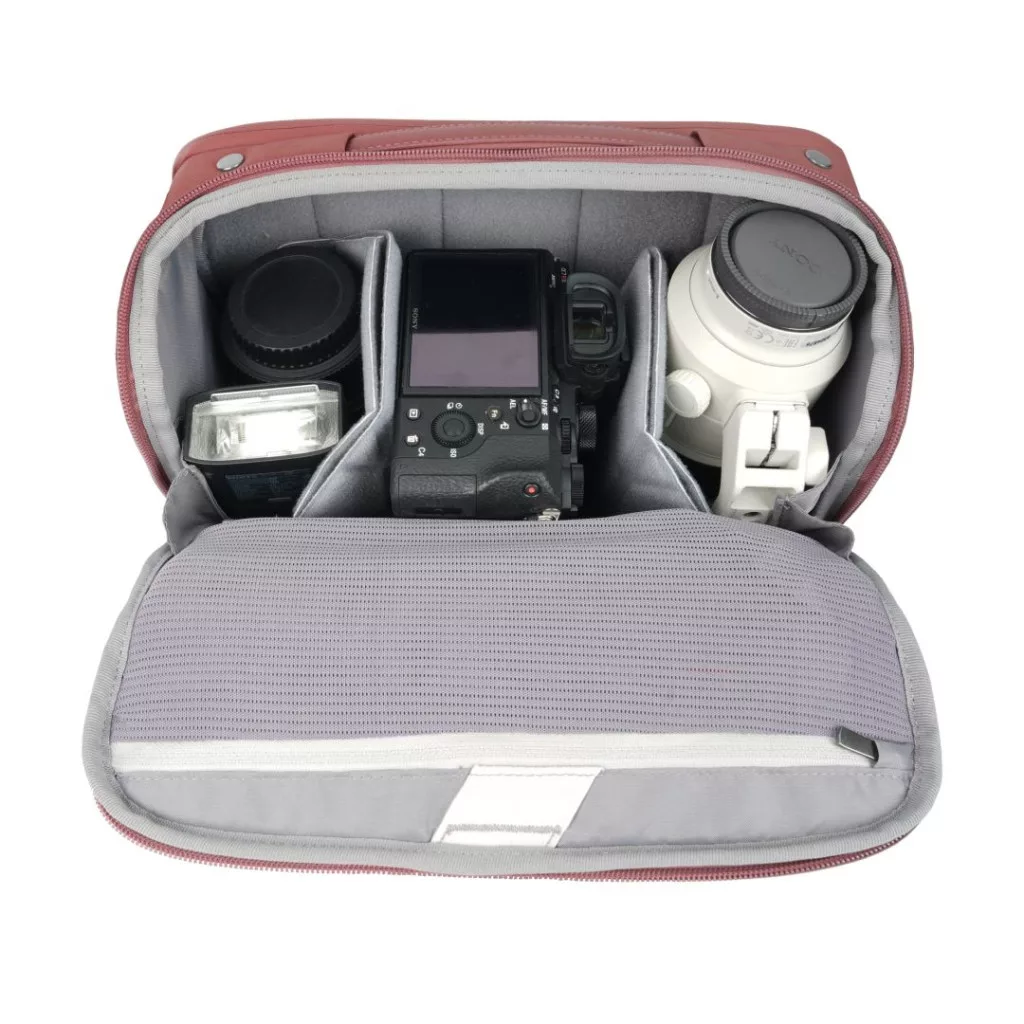 A fényképezőgép rekesz lehetővé teszi egy full-frame fényképezőgép és akár 2 objektív (24-70mm f2.8-ig), vagy egy kisebb drón szállítását, amelyeket karcsú EVA elválasztók választanak el, amelyeket úgy terveztek, hogy maximalizálják a rendelkezésre álló helyet, miközben védik a felszerelését. Az elválasztóelemeket a kívánt elrendezéshez igazíthatja, vagy eltávolíthatja őket, hogy egy mindennapi válltáskát hozzon létre. Élvezze a teljes hozzáférést a fényképezőgép rekeszhez a táska tetején keresztül, amely a maximális biztonság érdekében a testtől elfelé nyílik.