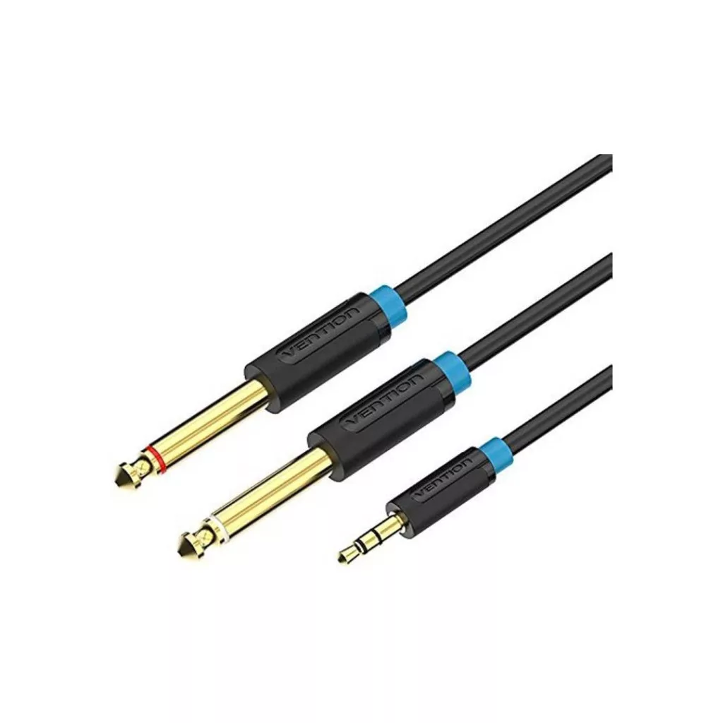 Audio kábel, 3,5mm jack, 2x6,35mm jack, Male/Male, 3m, Black