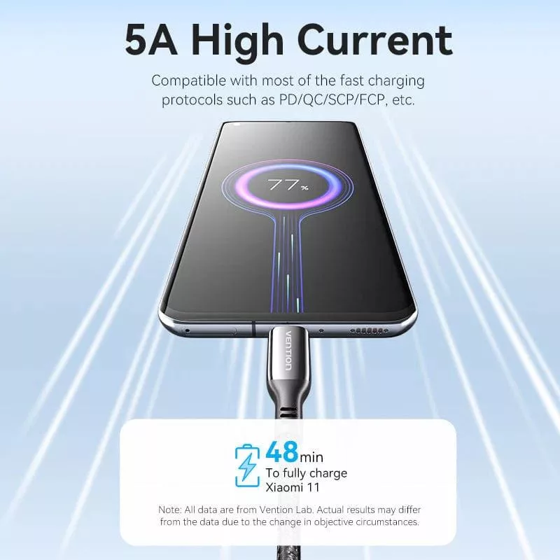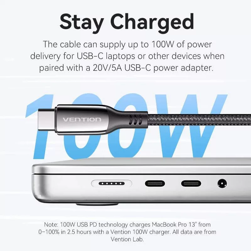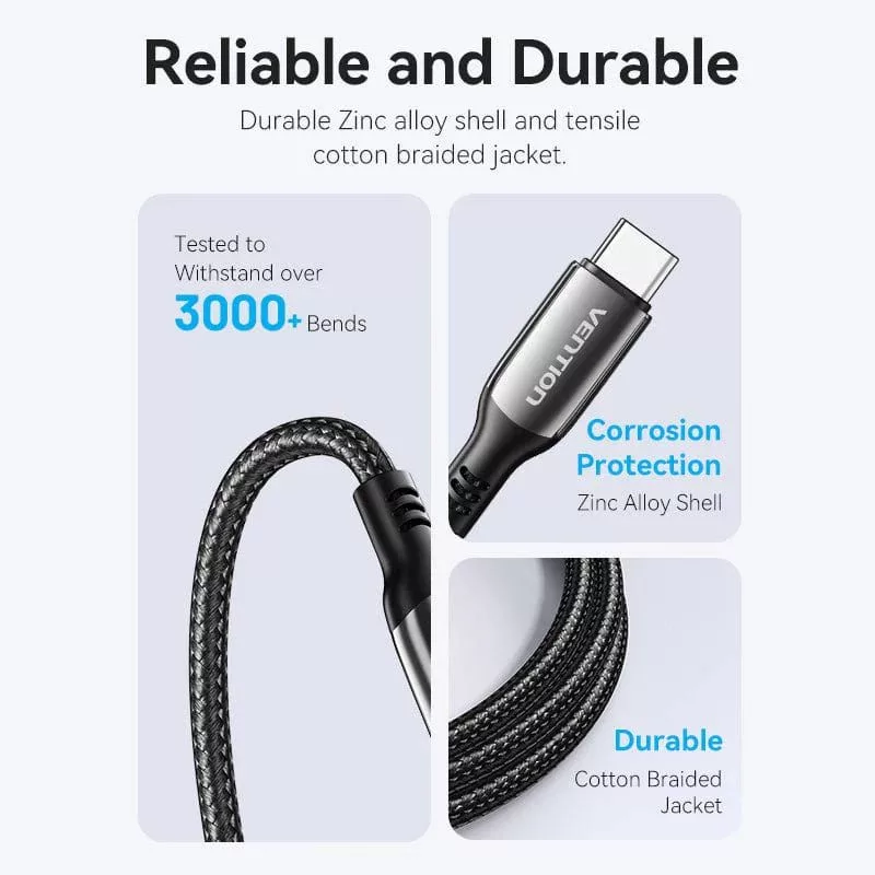Vention Cotton Braided USB 2.0 C Male to C Male 5A Zinc Alloy Type cable 2m Black