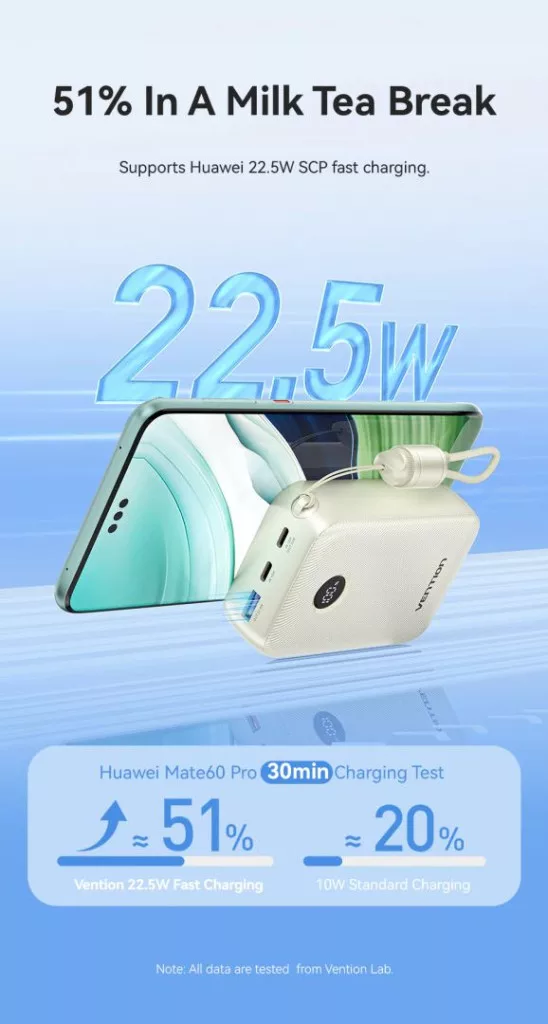 A Vention POWER BANK USB 20000MAH 22.5W nagy teljesítményű és kompakt megoldás a mobil eszközök energiaellátásához. A 20000 mAh kapacitással ez a power bank elegendő energiát biztosít okostelefonok, táblagépek és más USB-s eszközök többszöri feltöltéséhez. A lítium-ion akkumulátor megbízható és tartós teljesítményt biztosít, az USB Power Delivery technológia pedig gyors és hatékony, akár 22,5 wattos töltési sebességet tesz lehetővé. Elegáns kialakítása és könnyű súlya ideális társsá teszi a power bankot az útközbeni használathoz, legyen szó utazásról, irodai használatról vagy sportolásról. A fekete szín modern és elegáns megjelenést kölcsönöz a power banknak, amely illik a különböző életstílusokhoz.