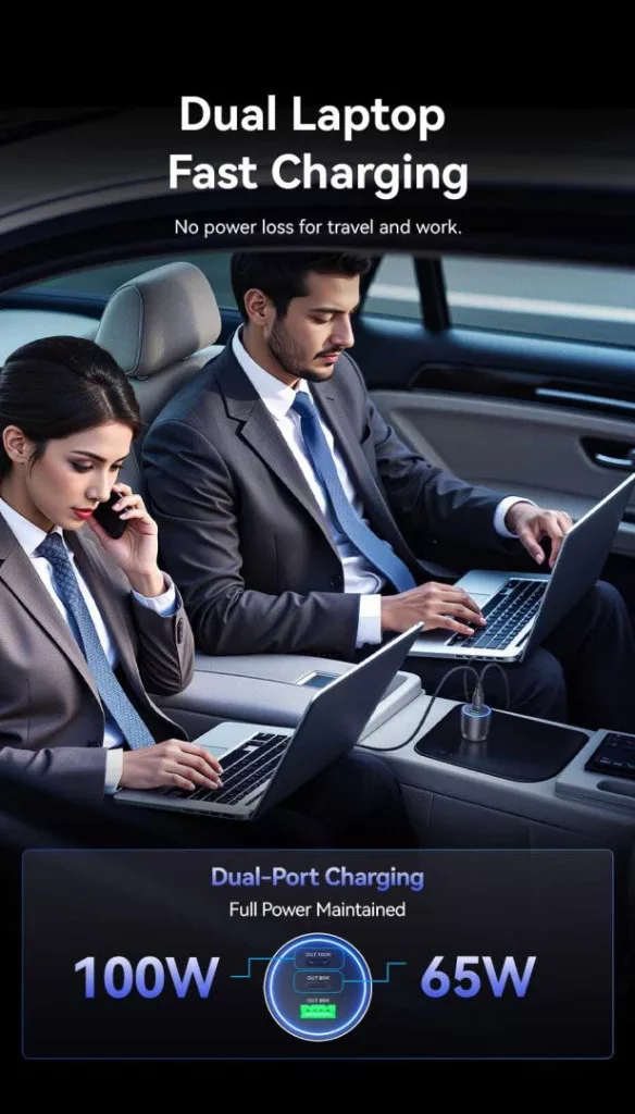 Autós töltő, 1xUSB-A, 2xUSB-C, 5V/9V/12V/15V/20V, 5A, 165W, QC, Black