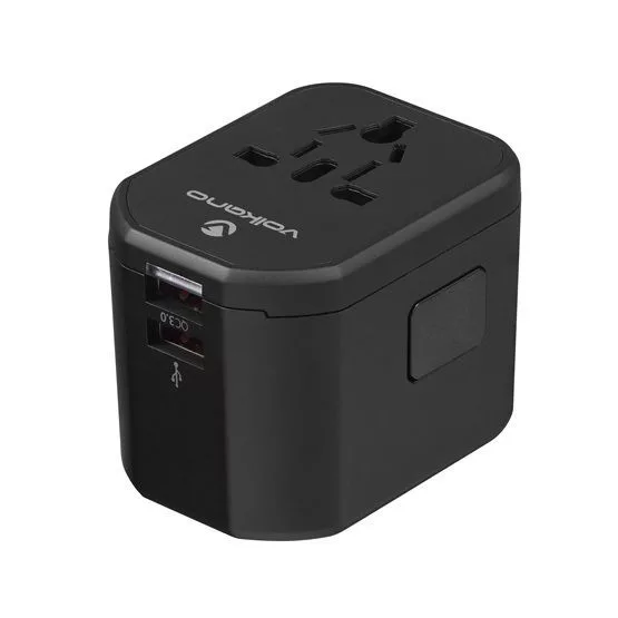 Adapter, 2xUSB-A, 1xUSB-C, 5V/9V/12V, 3A, 20W, QC, PD, Black