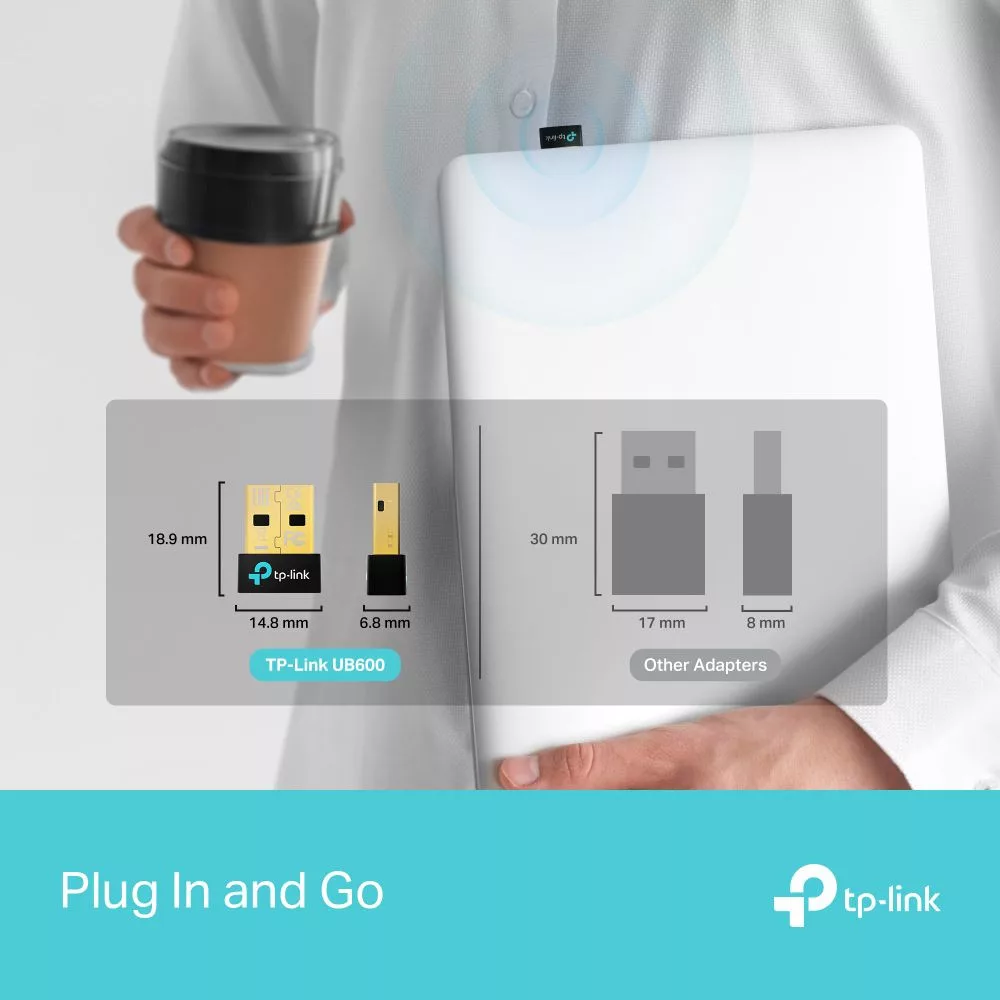 Az UB600 Bluetooth-képessé teszi a nem Bluetooth-kompatibilis PC-ket és laptopokat. Csak csatlakoztassa Bluetooth-eszközeit a számítógépéhez, és élvezze a kényelmet. Egyszerre akár 7 Bluetooth-eszközt is támogat, erőteljes vezeték nélküli kapcsolattal. Fájlokat, zenét és videókat is átvihet Bluetooth-eszközei és a számítógépe között, kétszer gyorsabb átviteli sebességgel.*