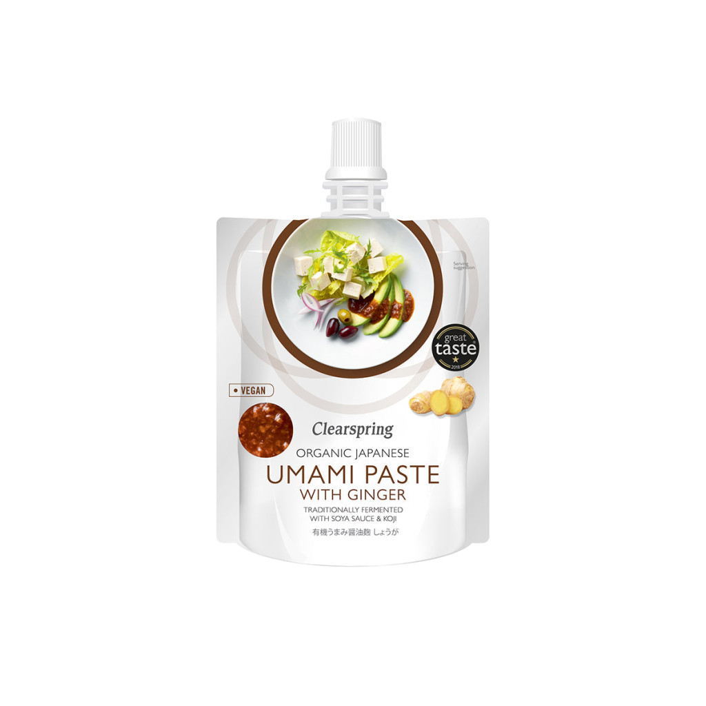 A Clearspring Organic Japanese Umami Paste with Ginger egy olyan paszta, amely számos ételhez adható, hogy fokozza azok általános umami ízét. Gondoljon rá úgy, mint egy természetes ízesítőre, amely bármely étel ízét fokozza.Hagyományosan Koji kultúra rizshez történő hozzáadásával és természetes erjedésben hagyásával készül, majd az Umami szójaszósszal és gyömbérrel keveredik, hogy elkészüljön ez a hihetetlenül ízletes és sokoldalú fűszer.Összetevők: szójaszósz* (47%) (víz, szójabab*, búza*, tengeri só), tenyésztett rizs* (27%) (rizs*, koji [0,001%]), víz, gyömbér* (3%).*organikusÁtlagos tápérték 100g termékben:Energia: 445 kj/105 kcalZsír: 0,4g Amelyből telített zsírsavak: 0g Szénhidrát: 20g Amelyből cukrok: 3g Fehérje: 5.4g Rost: 0,7g Só: 6,3g