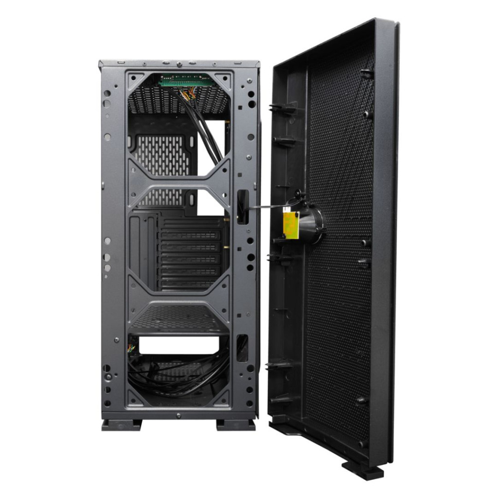 ATX, Black, 2x3,5", 2x2,5", 2xUSB2.0, 1xUSB3.0, Audio, Táp nélkül, 430x375x192mm, Window, Gamer