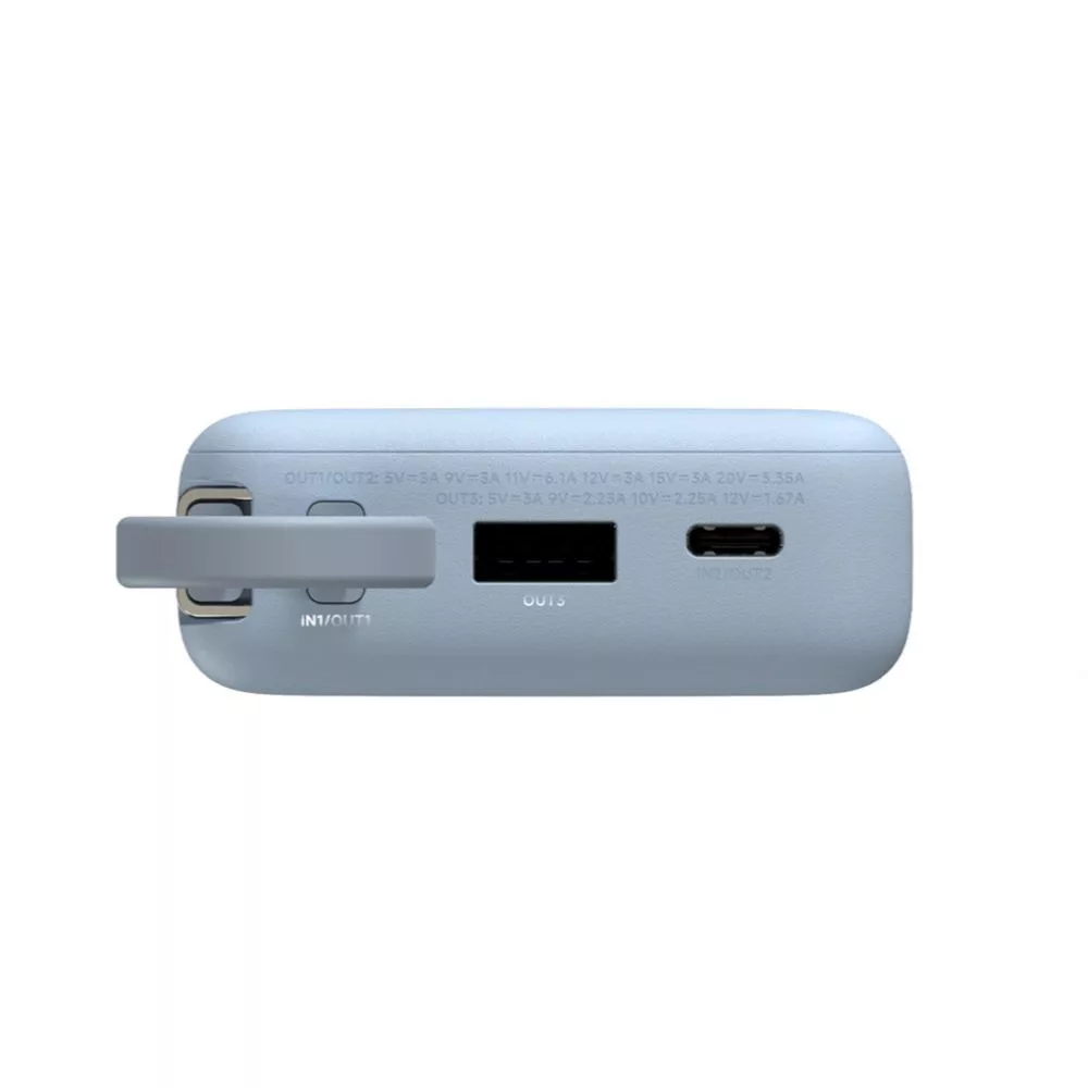 A legkényelmesebb funkciója a beépített USB-C töltőkábel, amely tartós TPU anyagból készült és praktikus zsinórként is használható a kényelmes hordozáshoz. Ezen felül egy különálló USB-C és egy USB-A port is található rajta, így egyszerre három eszköz is tölthető.