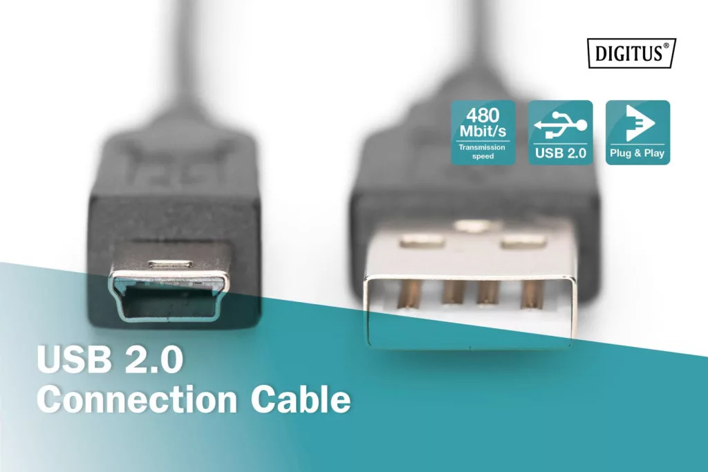 Assmann USB 2.0 connection cable, type A - mini B (5pin) 1,8m Black