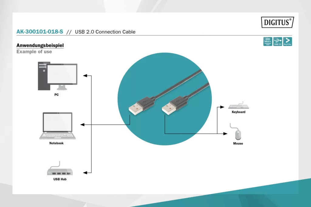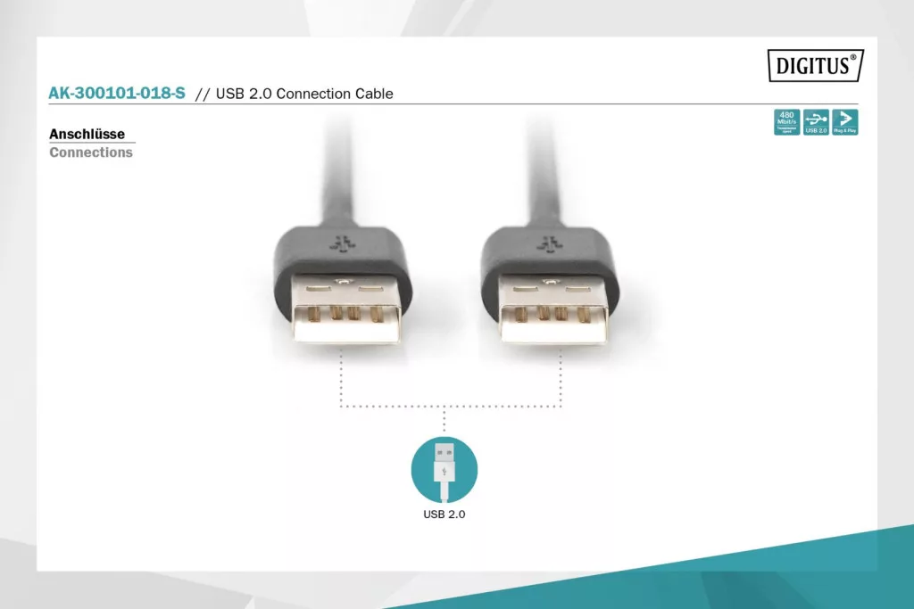 Assmann USB 2.0 connection cable, type A 1,8m Black