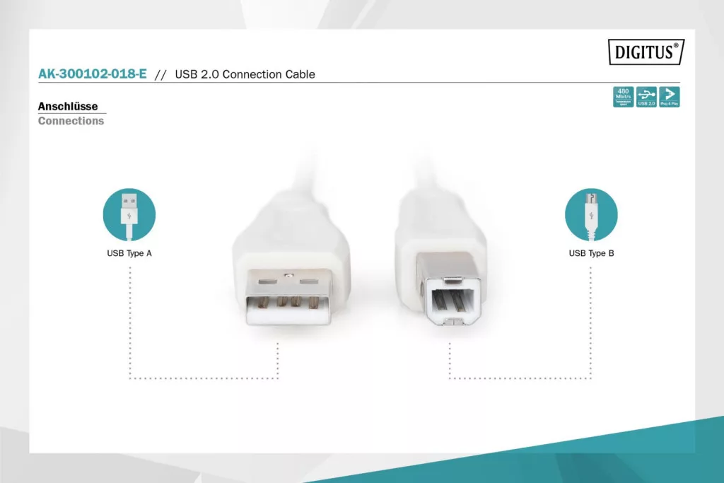 USB kábel, USB-A, USB-B, USB2.0, Male/Male, 1,8m, Beige, Adatkábel