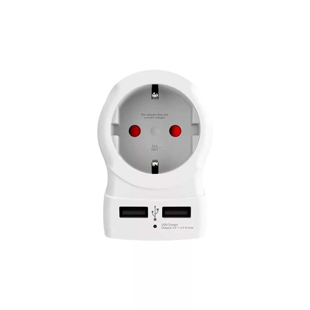 2 x USB port lehetővé teszi okostelefonja és táblagépe egyidejű töltését, miközben az adapter egyidejűleg földelt eszközzel is használható