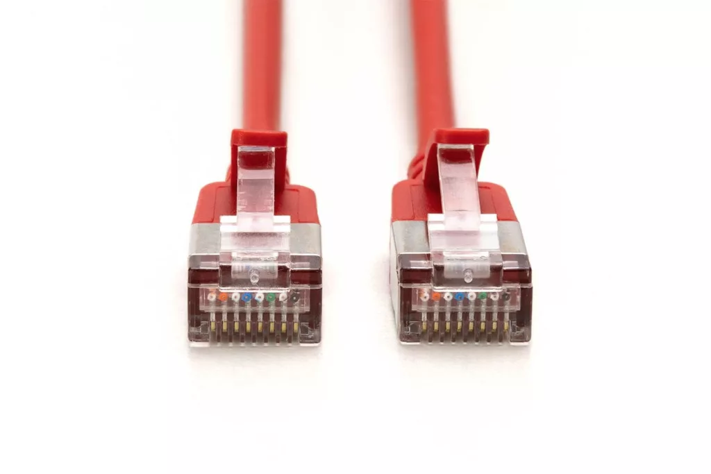 A DIGITUS® Slim patch kábeleket kis külső átmérőjük és rugalmas köpenyük jellemzi. A vékony kialakítás sokoldalú felhasználást tesz lehetővé a hálózatban. A DIGITUS® Slim patchkábelek emellett az ISO/IEC 11801 és a DIN EN 50173 CAT 6A szabványoknak megfelelően készülnek. Garantálják, hogy a kábelszerelés megfelel az ISO és EN csatornaspecifikációnak, és kiváló teljesítményt nyújtanak a DIGITUS® CAT 6A kábelezésben. A teljesítményt 500 MHz-ig tesztelték, beleértve az olyan jellemzőket is, mint a közeli keresztbeszólás ("NEXT"). A DIGITUS® patch kábeleket kifejezetten úgy fejlesztették ki, hogy megfeleljenek a különböző alkalmazási területek összes követelményének. Mindegyik kábelt húzáscsökkentővel ellátott, öntött gyűrődésgátló hüvelynel látták el. Ezenkívül a hüvelyben van egy reteszelőkar-védelem, amely megakadályozza, hogy a kábel elgörbüljön, és a reteszelőkar letörjön a dugóról.