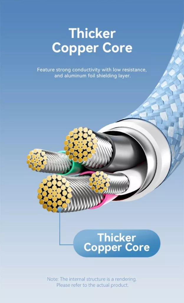 Tartós és elegáns kialakítás. Ezt a kábelt erős PVC-konstrukció és alumínium ház jellemzi, amely nemcsak esztétikus megjelenést biztosít, hanem védelmet is a mechanikai sérülésekkel szemben. Emellett rugalmas burkolata megakadályozza a kábel összegabalyodását, így rendkívül kényelmes a használata.