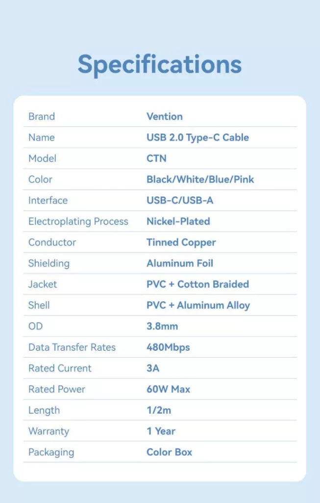 A Vention kábel lehetővé teszi, hogy egyszerre töltse készülékeit és akár 480 Mbps sebességgel továbbítsa az adatokat. Könnyedén, másodpercek alatt továbbíthatja kedvenc filmjeit, zenéit vagy dokumentumait, értékes időt takarítva meg.
