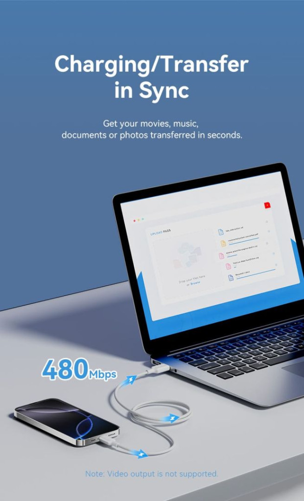 A kábel 3A maximális áramerősségével gyors töltést biztosít, jelentősen csökkentve az okostelefon vagy más eszközök töltéséhez szükséges időt. Emellett támogatja a 480 Mbps sebességű adatátvitelt, így pillanatok alatt átvihetsz olyan fájlokat, mint a fényképek, dokumentumok vagy videók.