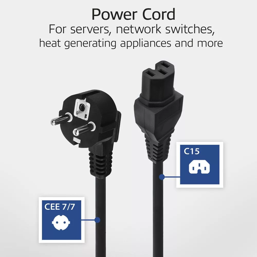 A CEE 7/7-C15 tápkábelt gyakran használják hálózati kapcsolók és szerverek táplálására. A tápkábel alkalmas hőtermelő alkalmazásokhoz.