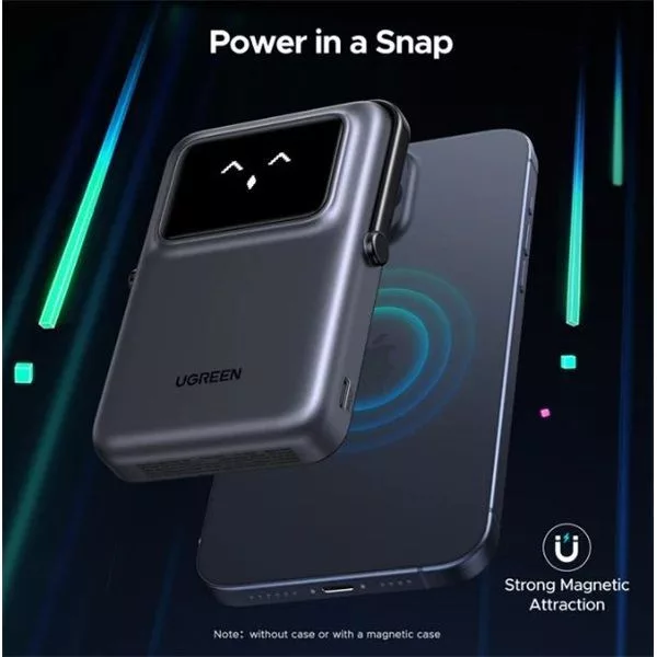 TFT kijelzős élmény: Az UGREEN mágneses power bank élénk TFT kijelzője arckifejezéseken keresztül mutatja az aktuális töltöttségi szintet - így egy pillantással láthatod az energiaszintet, miközben egy kis játékosságot is visz a töltési folyamatba.